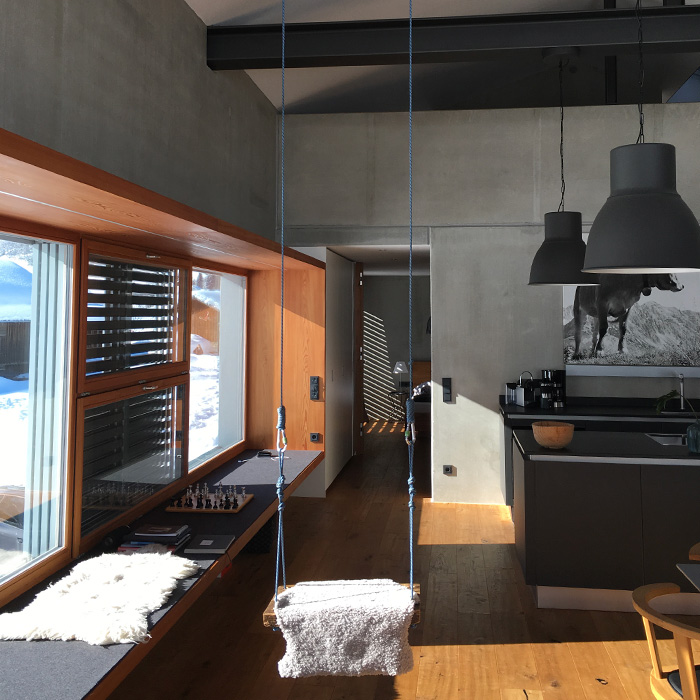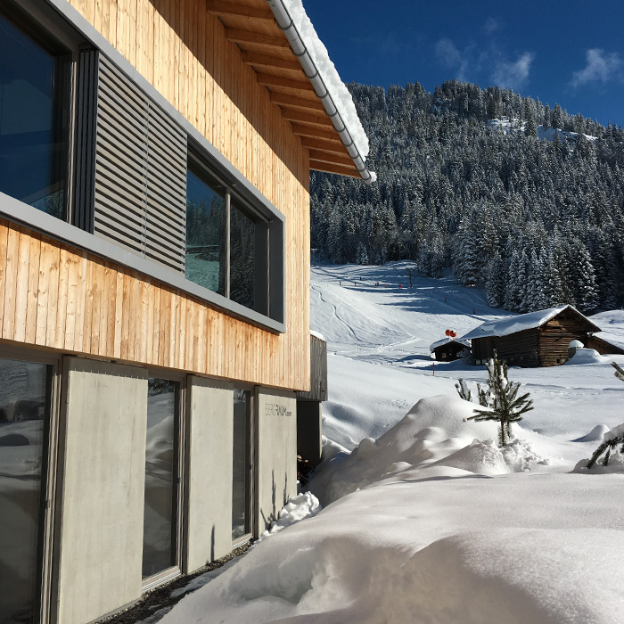 Anders wohnen in den Bergen! Der BERGRAUM nimmt mit seinen Baustoffen Beton, Holz und Glas das umliegende Bergpanorama in sich auf und spiegelt es in jedem Raum wieder. Lichte Räume, Holz, natürliche Materialien strahlen Wärme, Ruhe und Gelassenheit aus und sorgen für Wohnkomfort und Entspannung. Das großzügige Raumkonzept bietet Platz für Gemeinschaft und lässt Freiraum zur individuellen Entfaltung und zum Rückzug.